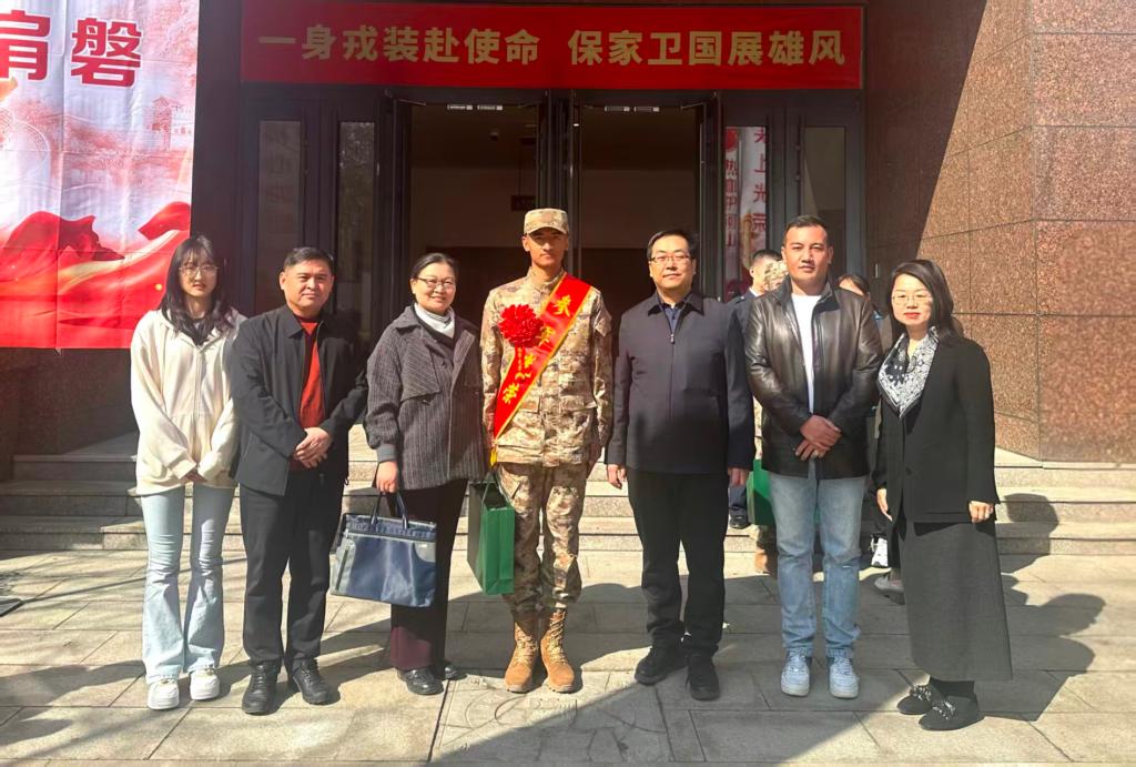 欢送会后,学校为入伍新兵举办了简朴庄重的送行仪式,并为参军同学发放纪念品以及参军资助金,传递学校对学子从军报国的殷切期许与坚实支持。学生处及学院领导、老师为考塞尔·努尔麦麦提送上精心准备的新疆特产,暖心叮嘱之余,更寄予厚望:希望他在未来的军旅生活中坚定理想信念、刻苦训练本领,在军营的淬炼中茁壮成长,为母校争光添彩,同时表示,无论今后身处何方,学校永远是其温暖的港湾和坚强的后盾。