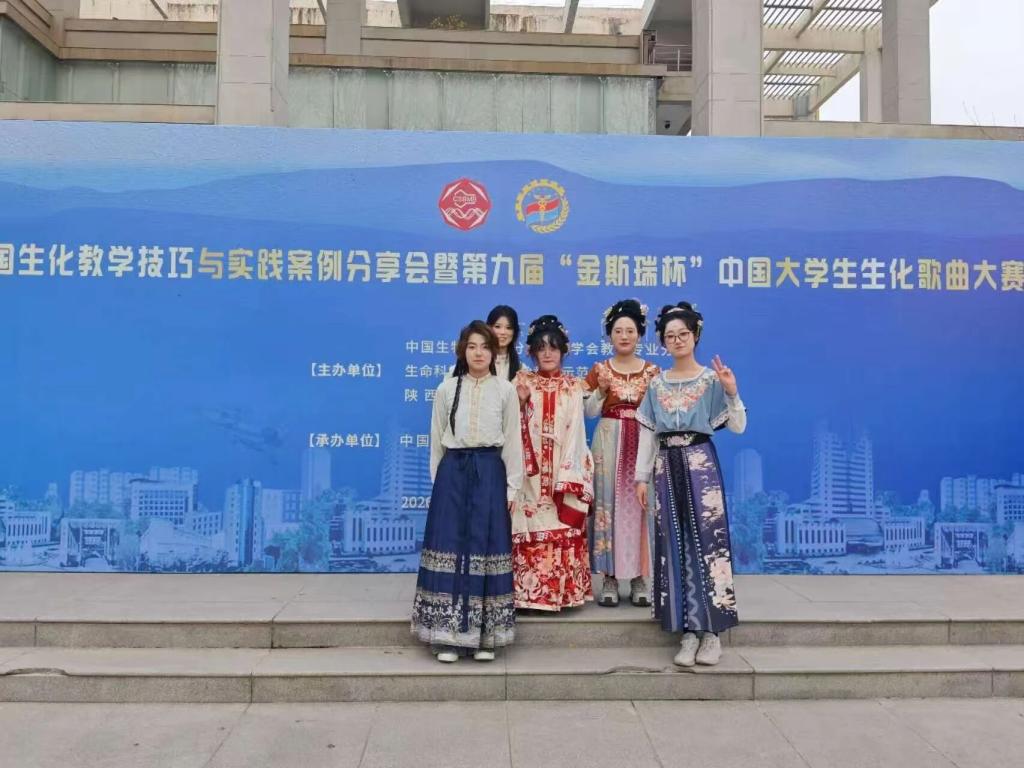 2026年3月21日,由中国生物化学与分子生物学会主办,空军军医大学承办的第九届“金斯瑞杯”中国大学生生化歌曲大赛圆满落下帷幕。我院生物化学课程组带领2024级生物信息学专业5名学生组成学校代表队,与来自全国各地的59所高校派出的61支队伍展开激烈的角逐,最终以优异的表现斩获全国三等奖。