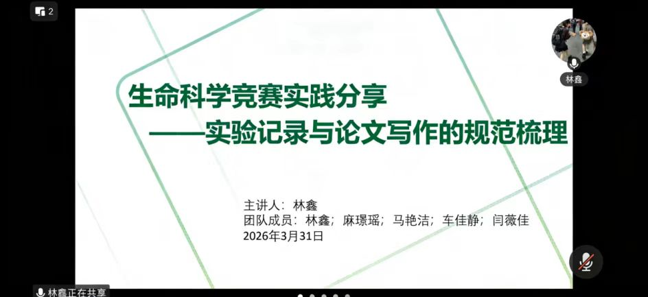 为帮助我院学子提升科研素养、锤炼竞赛本领,3月31日,全国大学生生命科学竞赛经验分享会在线上顺利举行。本次分享会特别邀请第十届全国大学生生命科学竞赛国家一等奖团队负责人林鑫,为学院2026年各参赛团队作经验分享,助力各团队高效备赛。