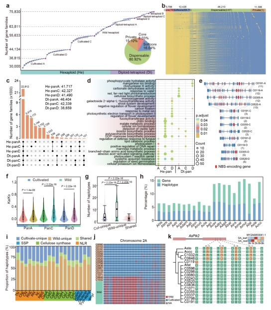 研究利用35个高质量燕麦基因组,明确了燕麦属多倍体物种的起源与演化历史,揭示了燕麦属物种间复杂的网状进化和频繁的遗传交流塑造了其丰富的基因组倍型与基因组多样性。此外,研究发现,燕麦基因组中转座子的插入位置存在明显偏好性并驱动了结构变异的产生,而结构变异通过影响基因的表达模式进而在燕麦基因组多样性和环境适应性演化中发挥了关键作用。同时,通过构建燕麦属超级泛基因组,在野生燕麦中挖掘到了约26.63%的新基因及59.93%的新基因型,并检测到栽培燕麦基因组中存在多个野生燕麦来源的大片段遗传渗入,证明了利用野生燕麦改良栽培燕麦的可行性,并凸显了其育种潜力。这些研究不仅为解析燕麦进化与环境适应演化机制提供了理论支撑,也为挖掘与燕麦重要农艺性状相关的优异基因、推动燕麦分子设计育种以及高效利用野生资源改良栽培燕麦奠定了坚实基础。