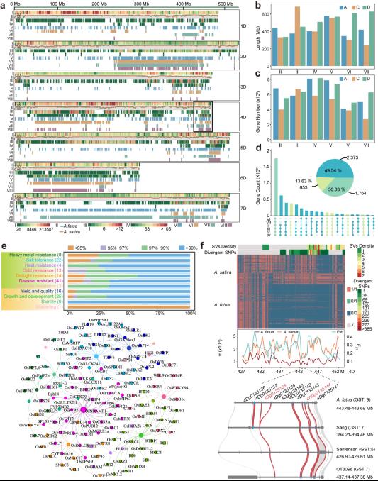 图2. 野燕麦和栽培燕麦基因组高度分化区域的鉴定与分析