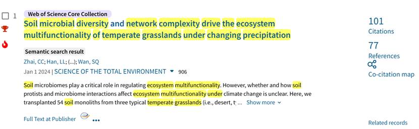 这项突破性成果源自团队博士生翟常春于2024年1月在《Science of the Total Environment》期刊发表的题为《Soil microbial diversity and network complexity drive the ecosystem multifunctionality of temperate grasslands under changing precipitation》的论文。